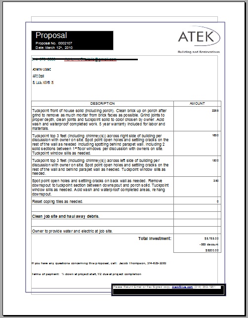 Brick Repair Estimates, Bids, Quotes, Proposals