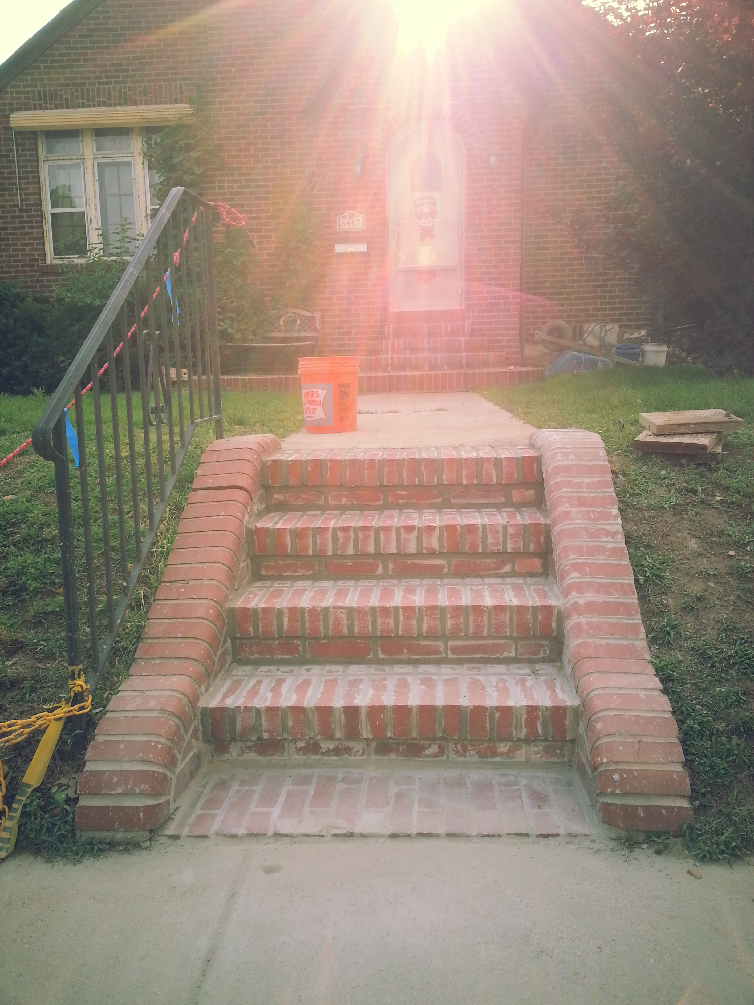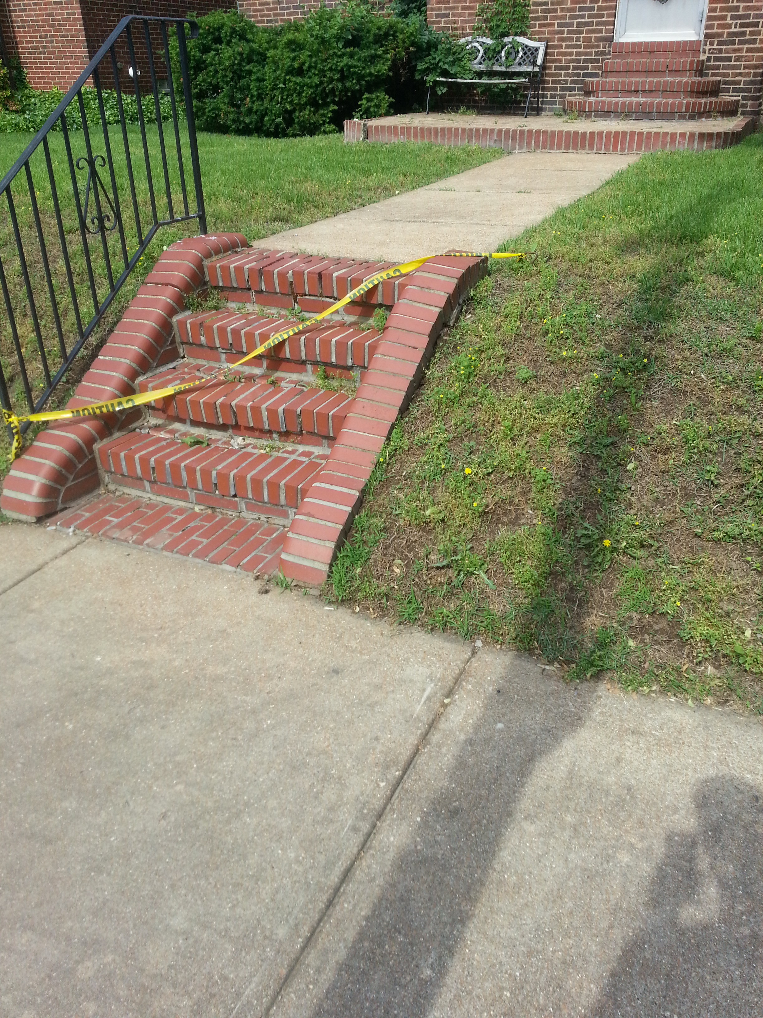 Step relay and wing wall tuckpointing project in St. Louis Hills/Princeton Heights Neighborhood. The winter, especially this last winter can be brutal on walkways and steps. If you’ve found yourself with exploding, shifting stair, brick or stone patios/walkways, give us a call, we can help!!!