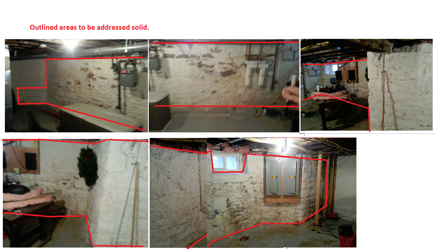 Process included removal of deteriorated joints in stone, cleaning of joints and stone to remove dirt, debris, growth and loose paint, then re-coating with a masonry waterproofer paint.