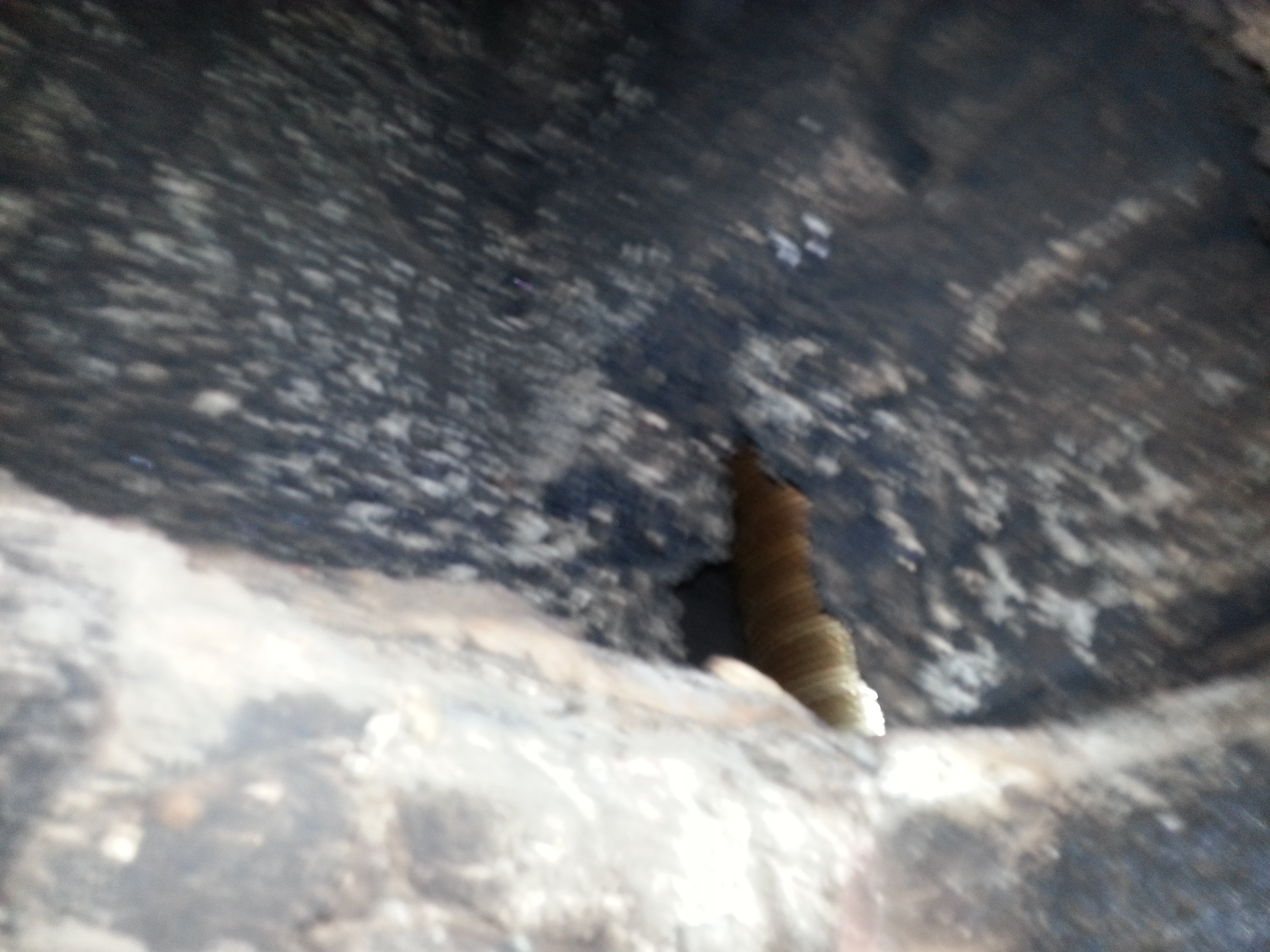 This picture shows a missing brick inside a firebox that opens into area where gas appliances are vented.